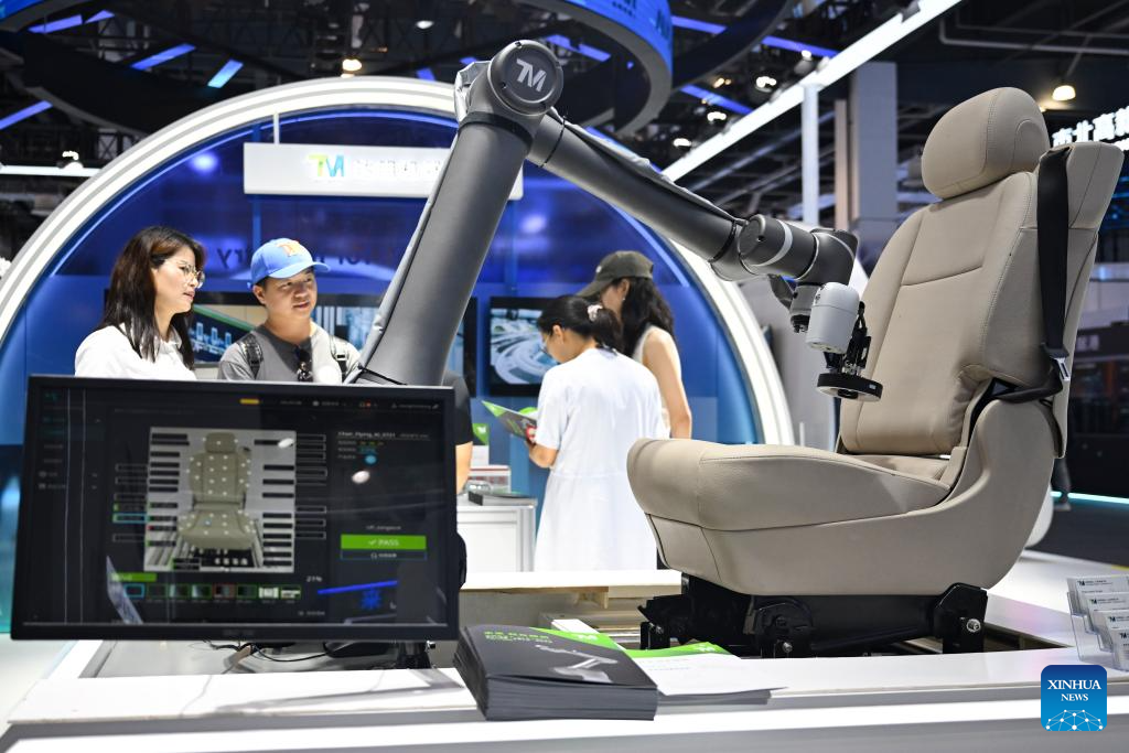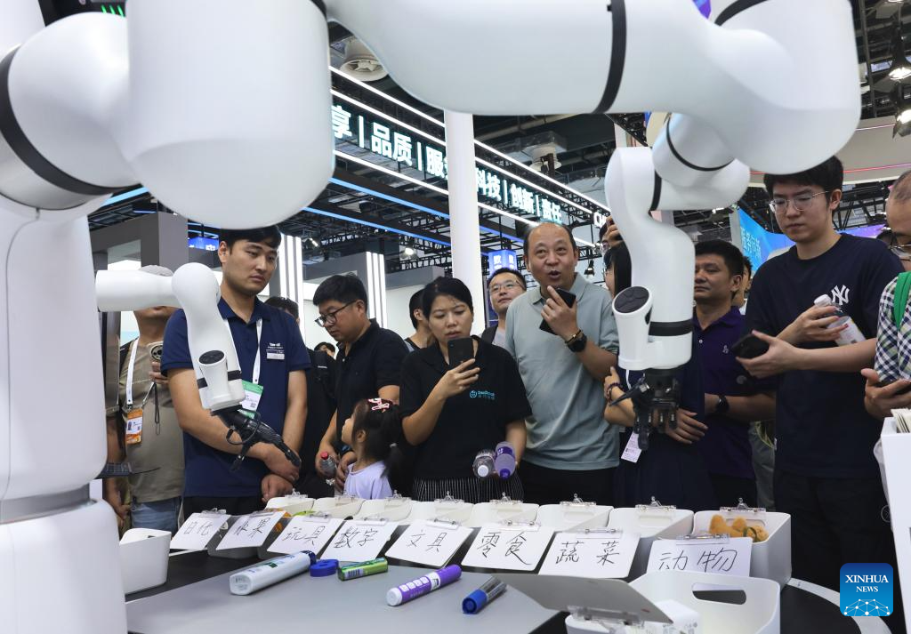 The ongoing 2025 World AI Conference showcases the world's latest AI advancements while providing a platform for visitors to access AI products and technologies. (Xinhua/Fang Zhe)
