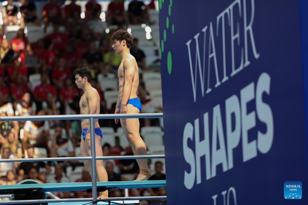 Timo Barthel/Moritz Wesemann of Germany compete during the men's 3m synchronised final of diving at the World Aquatics Championships in Singapore, July 28, 2025. (Xinhua/Luo Yuan)