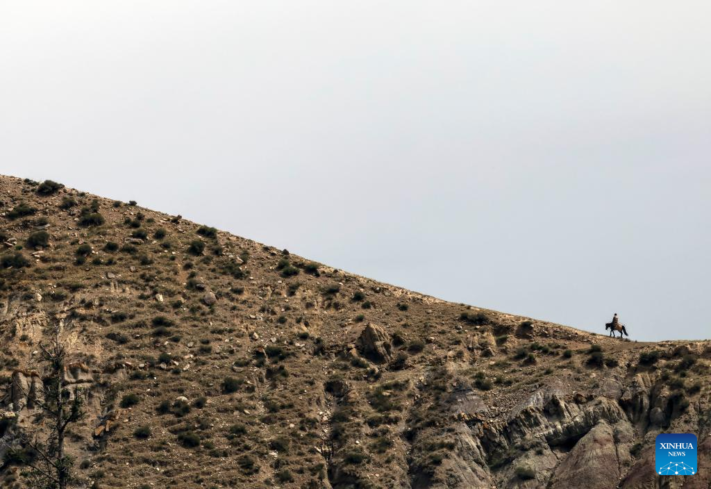 This photo shows a canyon in Wusu City, northwest China's Xinjiang Uygur Autonomous Region, July 28, 2025. In recent days, multiple areas in Xinjiang have experienced sustained high temperatures, prompting residents and tourists to seek relief in cooler scenic spots.
