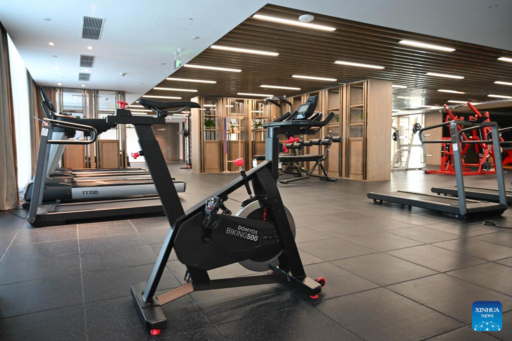 Photo taken on Aug. 3, 2025 shows the fitness centre in the TWG village for The World Games (TWG) 2025 Chengdu in Chengdu, southwest China's Sichuan Province. (Xinhua/Xu Bingjie)