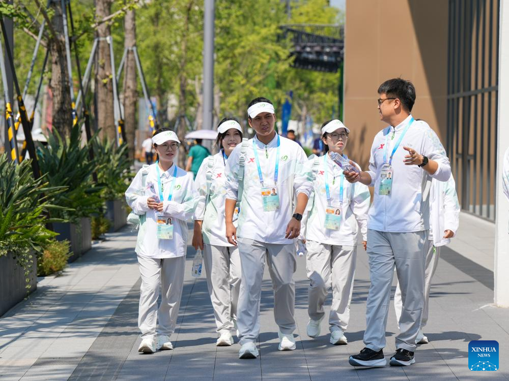 Volunteers are seen in the TWG village for The World Games (TWG) 2025 Chengdu in Chengdu, southwest China's Sichuan Province, Aug. 3, 2025. (Xinhua/Wang Xi)
