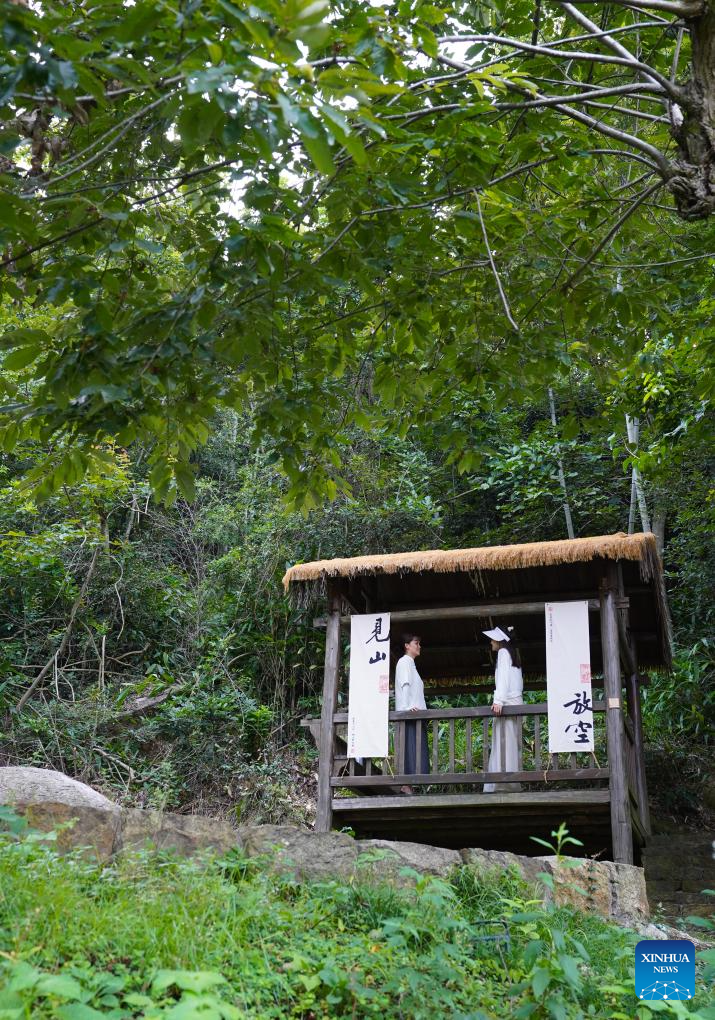 Tourists take a rest at a cafe in Nanping Village, Taiping Town, Nanchang City of east China's Jiangxi Province, Aug. 1, 2025.