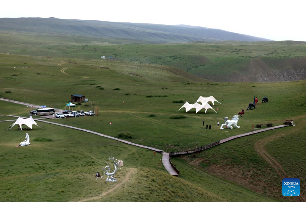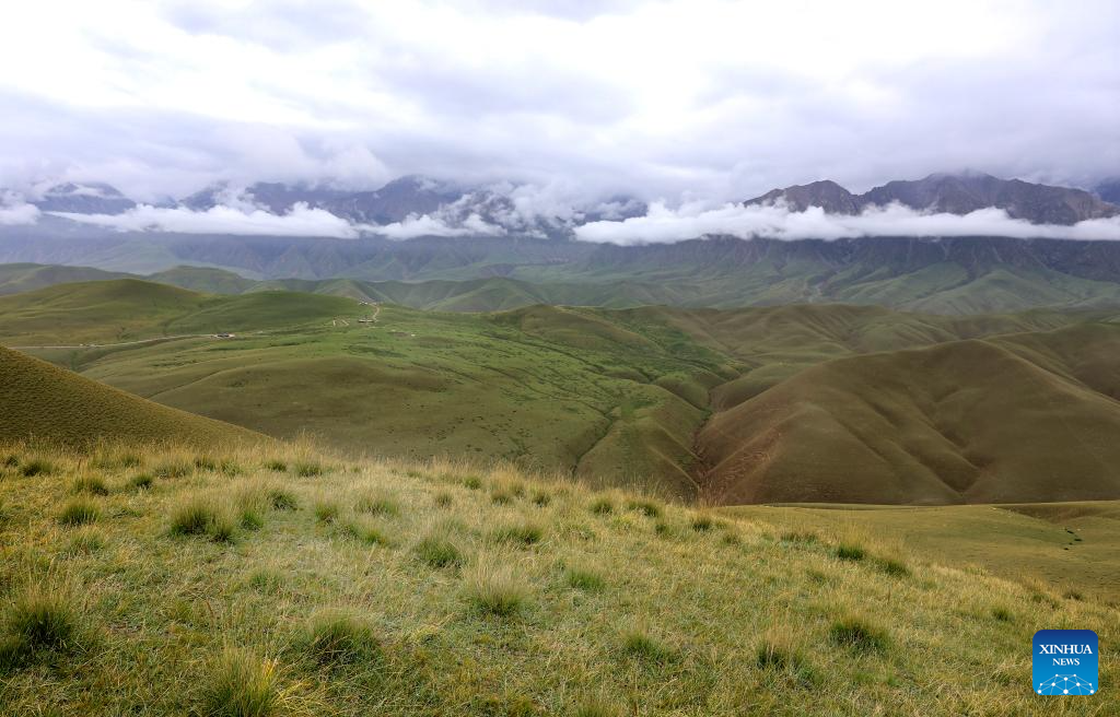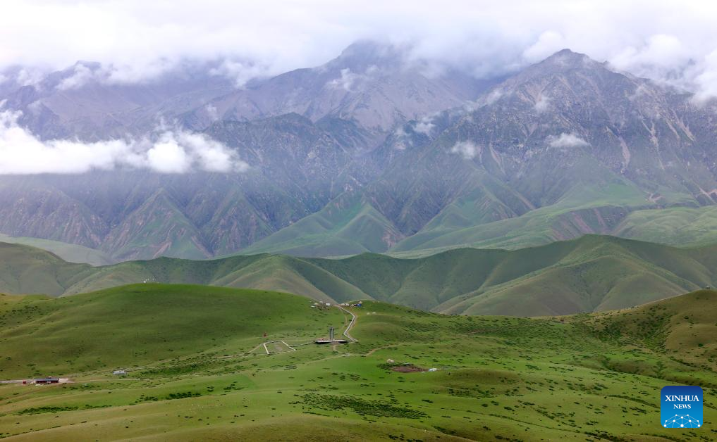 This photo taken on Aug. 6, 2025 shows a view of Kunlun Mountains scenic area in Qira County, northwest China's Xinjiang Uygur Autonomous Region. Known for its unique natural beauty and rich cultural heritage, Kunlun Mountains scenic area has attracted numerous visitors during summer vacation. (Xinhua/Wang Fei)
