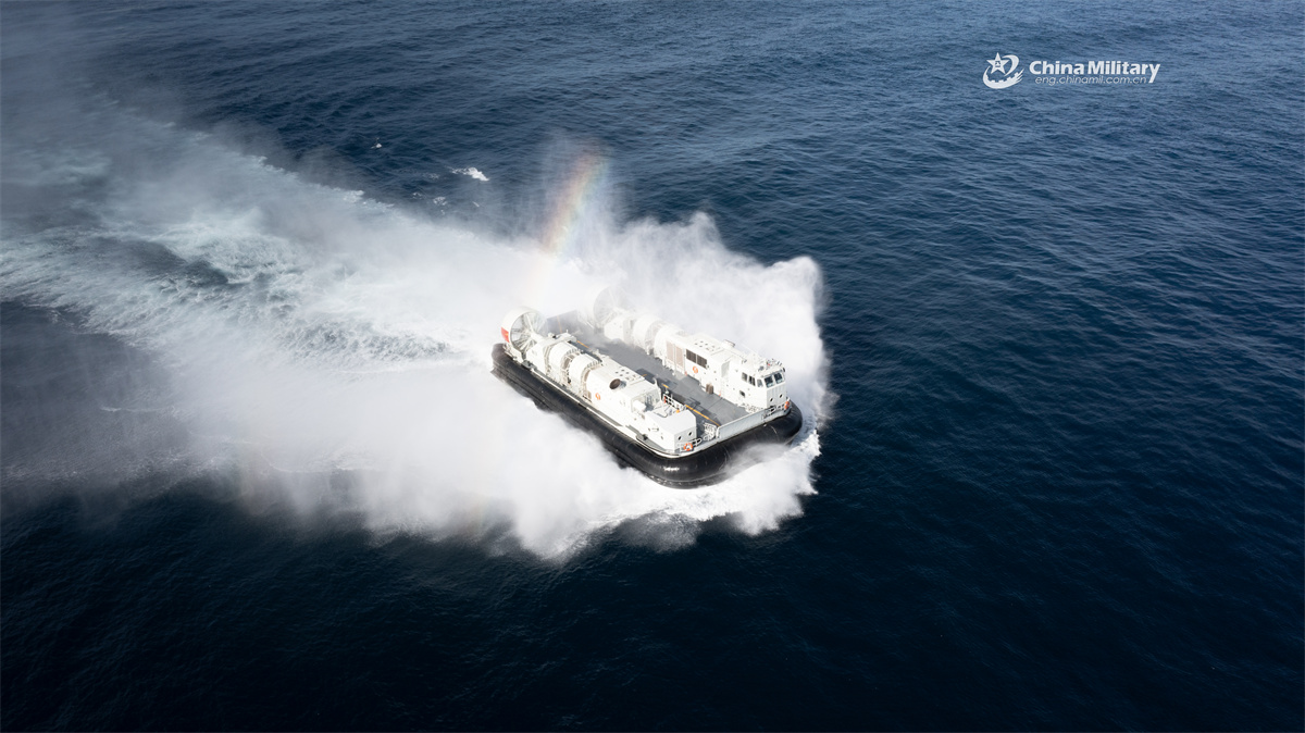 A landing craft air cushion (LCAC) attached to a landing ship group with the navy under the Chinese PLA Southern Theater Command steams to the beachhead at lightning speed during a maritime training exercise in summer day. (eng.chinamil.com.cn/Photo by Zhang Xueyan)