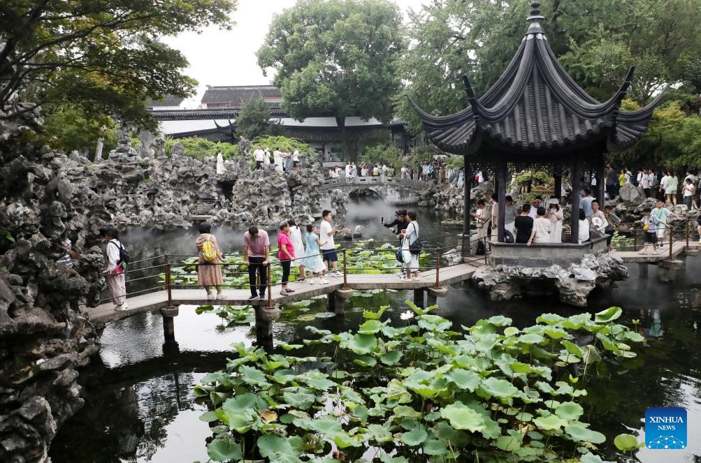 Tourists visit the Lion Grove Garden in Suzhou, east China's Jiangsu Province, on Aug. 11, 2025. Scenic areas across China have entered peak season for tourism during summer vacation. (Photo by Hang Xingwei/Xinhua)