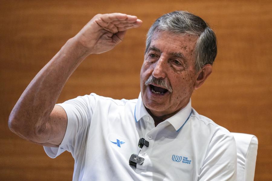 International World Games Association (IWGA) President Jose Perurena attends a press conference in Chengdu, southwest China's Sichuan Province, Aug. 11, 2025. (Xinhua/Bai Xuefei)