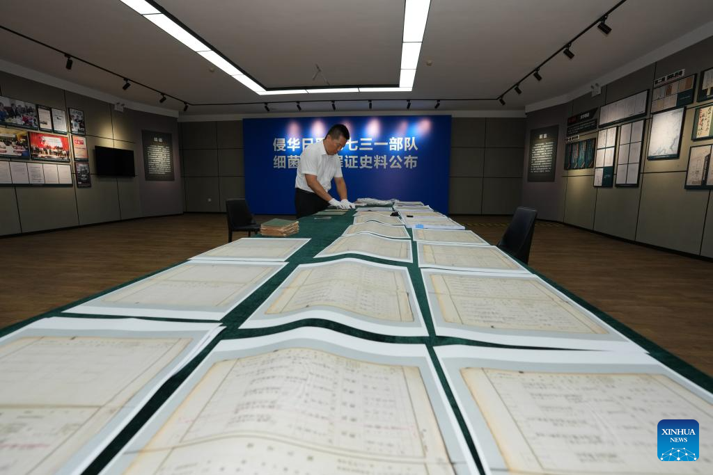 The unveiling of new evidence of Unit 731 is held at the Exhibition Hall of Evidences of Crime Committed by Unit 731 of the Japanese Imperial Army in Harbin, northeast China's Heilongjiang Province, Aug. 15, 2025.