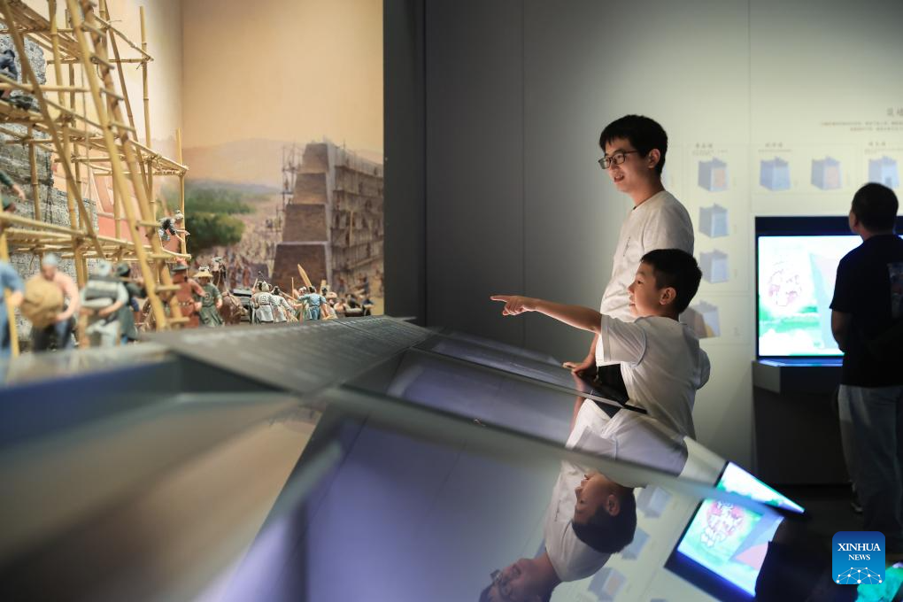 A guardian and his child visit a museum on city walls in Nanjing, east China's Jiangsu Province, Aug. 16, 2025. (Photo by Su Yang/Xinhua)