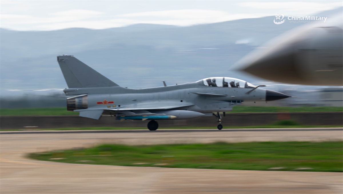 A two-seat J-10S fighter jet attached to the Chinese PLA Air Force taxis on the runway during an air-combat training exercise. (eng.chinamil.com.cn/Photo by Wang Wen and Lan Shanhu)
