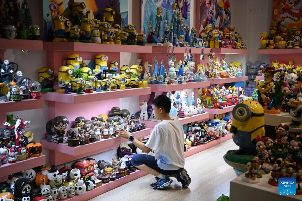 People engage in porcelain coloring experience at Quanzhou Shunmei Group Co., Ltd. in Dehua County, southeast China's Fujian Province, Aug. 20, 2025. Dehua, a county with centuries of ceramic-making history and famed for its white porcelain, is home to over 4,500 ceramic-making enterprises, selling products to more than 190 countries and regions worldwide. To promote Dehua ceramics, the county has established 54 exhibition centers in Belt and Road partner countries and key cities. From January to July this year, the county's ceramic exports has exceeded 2.138 billion yuan (about 297.9 million U.S. dollars) and the ceramic industry cluster has reached a scale of 41.61 billion yuan (about 5.797 billion U.S. dollars), representing a 5.06 percent and 6.8 percent year-on-year increase respectively. (Xinhua/Xiao Xiao)