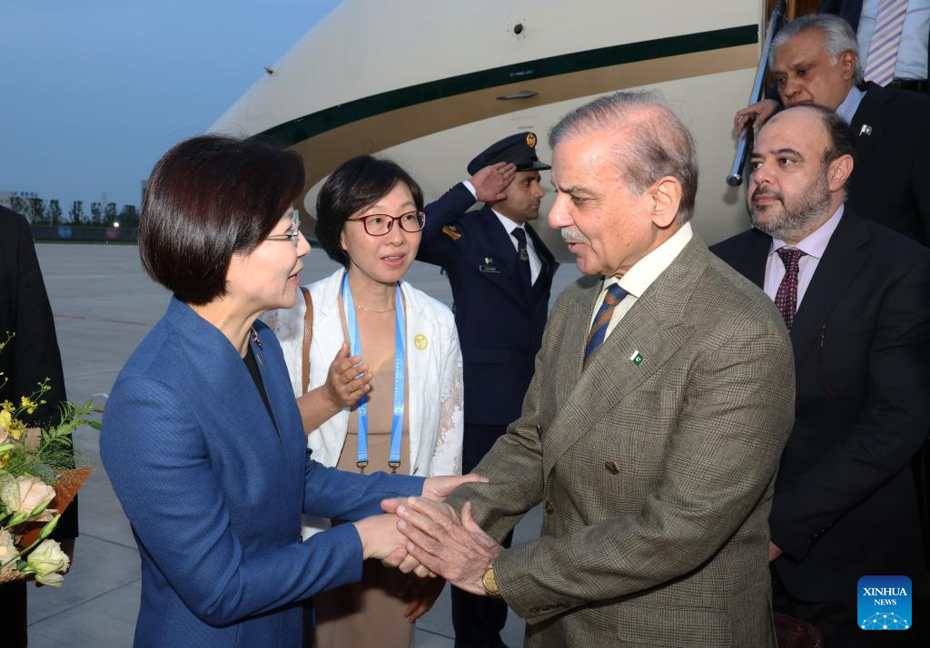 Pakistani Prime Minister Shehbaz Sharif arrives for the Shanghai Cooperation Organization (SCO) Summit 2025 in Tianjin, north China, Aug. 30, 2025. (Xinhua/Huang Bohan)