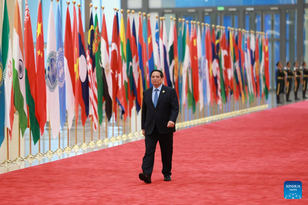 Vietnamese Prime Minister Pham Minh Chinh arrives at the Meijiang Convention and Exhibition Center for a welcoming banquet in Tianjin, north China, Aug. 31, 2025. Chinese President Xi Jinping and his wife, Peng Liyuan, on Sunday hosted a banquet in China's port city of Tianjin to welcome international guests who are here to attend the Shanghai Cooperation Organization (SCO) Summit 2025. (Xinhua/Ding Haitao)