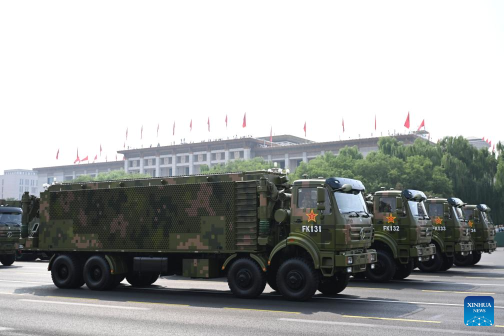 The early warning and detection formation attends a parade during a grand gathering to commemorate the 80th anniversary of the victory in the Chinese People's War of Resistance against Japanese Aggression and the World Anti-Fascist War in Beijing, capital of China, Sept. 3, 2025. (Xinhua/Yang Guanyu)