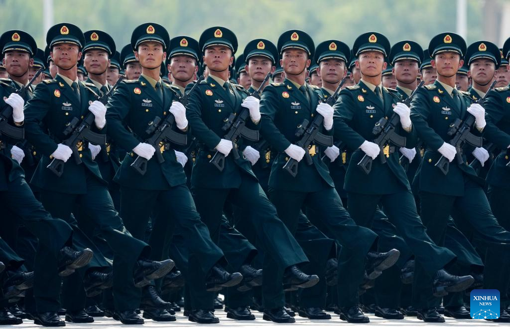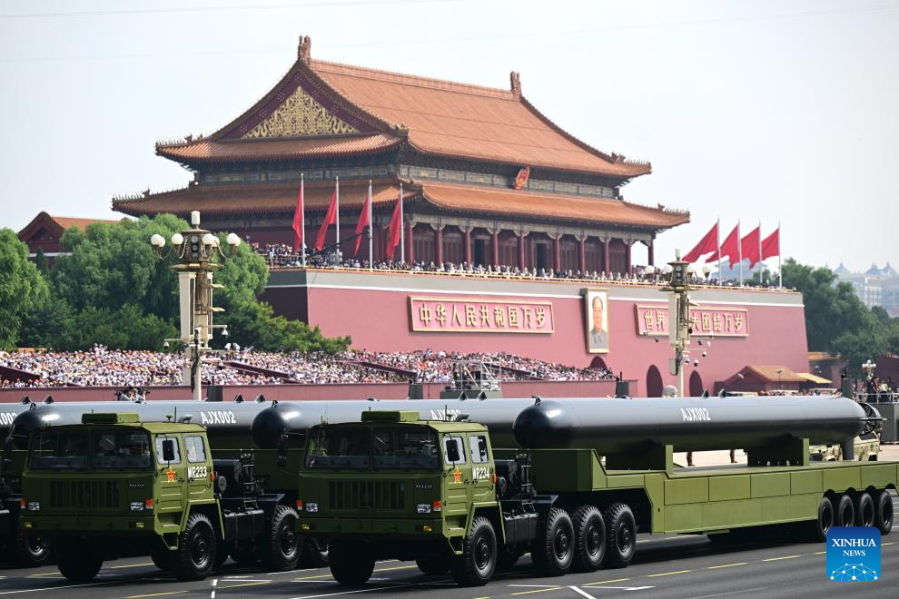 The formation of the People's Liberation Army Rocket Force marches through Tian'anmen Square during a military parade in Beijing, capital of China, Sept. 3, 2025. China on Wednesday held a grand gathering to commemorate the 80th anniversary of the victory in the Chinese People's War of Resistance against Japanese Aggression and the World Anti-Fascist War. (Xinhua/Xu Chang)