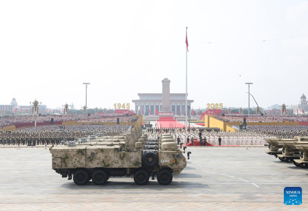The electronic countermeasures formation attends a military parade in Beijing, capital of China, Sept. 3, 2025. China on Wednesday held a grand gathering to commemorate the 80th anniversary of the victory in the Chinese People's War of Resistance against Japanese Aggression and the World Anti-Fascist War. (Xinhua/Chen Bin)