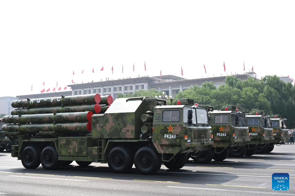 The long-range artillery formation attends a military parade in Beijing, capital of China, Sept. 3, 2025. China on Wednesday held a grand gathering to commemorate the 80th anniversary of the victory in the Chinese People's War of Resistance against Japanese Aggression and the World Anti-Fascist War. (Xinhua/Xiong Qi)