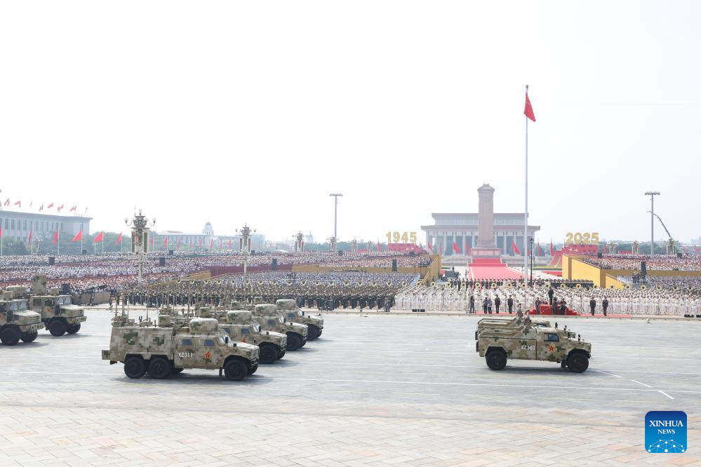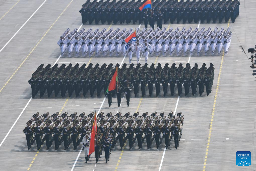 Foot formations attend a military parade in Beijing, capital of China, Sept. 3, 2025. China on Wednesday held a grand gathering to commemorate the 80th anniversary of the victory in the Chinese People's War of Resistance against Japanese Aggression and the World Anti-Fascist War. (Xinhua/Wang Peng)
