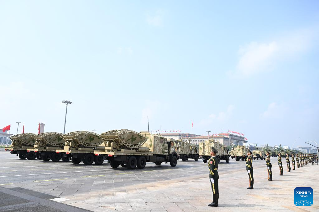 The armament support formation attends a military parade in Beijing, capital of China, Sept. 3, 2025. China on Wednesday held a grand gathering to commemorate the 80th anniversary of the victory in the Chinese People's War of Resistance against Japanese Aggression and the World Anti-Fascist War. (Xinhua/Huang Wei)