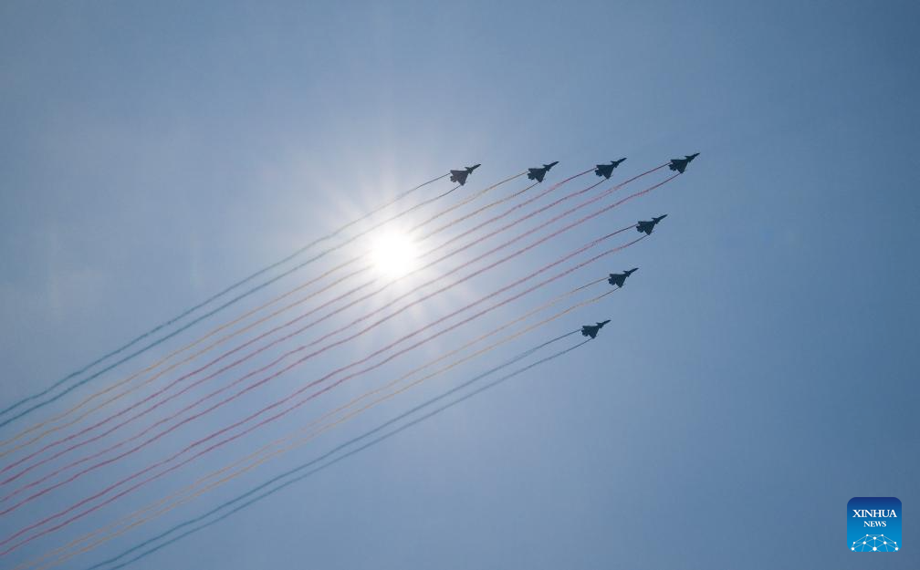 The trainer aircraft echelon attends a military parade in Beijing, capital of China, Sept. 3, 2025. China on Wednesday held a grand gathering to commemorate the 80th anniversary of the victory in the Chinese People's War of Resistance against Japanese Aggression and the World Anti-Fascist War. (Xinhua/Lian Zhen)