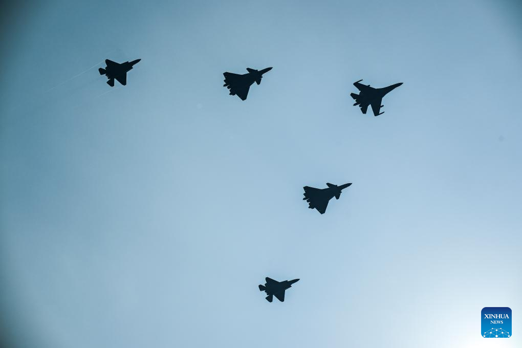 The fighter jets echelon attends a military parade in Beijing, capital of China, Sept. 3, 2025. China on Wednesday held a grand gathering to commemorate the 80th anniversary of the victory in the Chinese People's War of Resistance against Japanese Aggression and the World Anti-Fascist War. (Xinhua/Sun Fanyue)