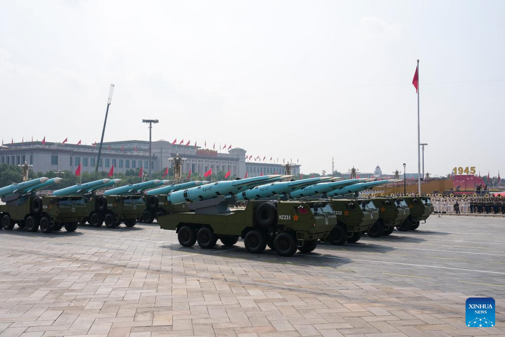 The anti-ship missile formation attends a military parade in Beijing, capital of China, Sept. 3, 2025. China on Wednesday held a grand gathering to commemorate the 80th anniversary of the victory in the Chinese People's War of Resistance against Japanese Aggression and the World Anti-Fascist War. (Xinhua/Ju Huanzong)