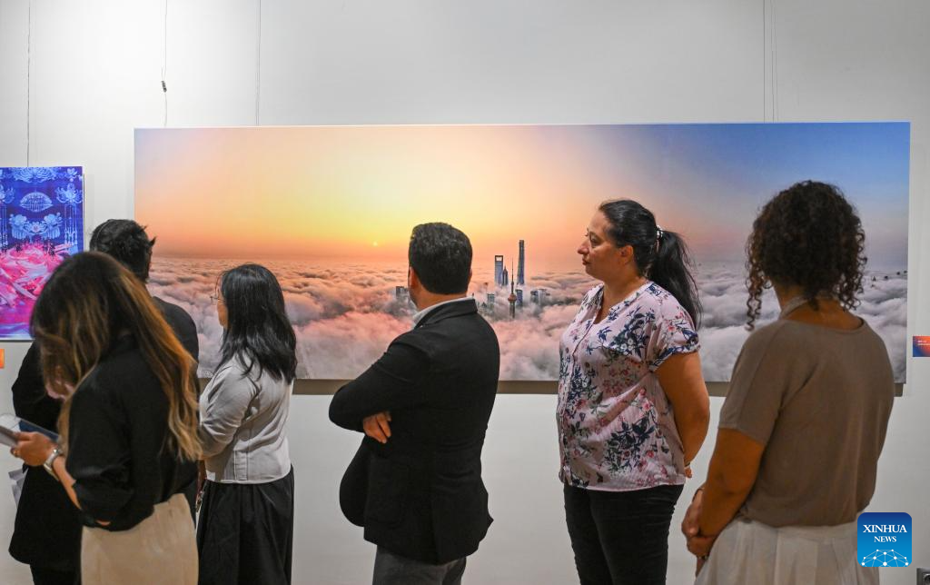 People visit the "Amazing Shanghai" City Branding Campaign and Shanghai-Istanbul Visual Arts Exhibition in Istanbul, Trkiye, Sept. 5, 2025. The "Amazing Shanghai" City Branding Campaign and Shanghai-Istanbul Visual Arts Exhibition was held in Istanbul on Friday. The event brought together nearly a hundred works of photography, illustrations and videos from artists of both China and Trkiye, showcasing urban landscapes and cultural essence of the two port cities. (Xinhua/Liu Lei)