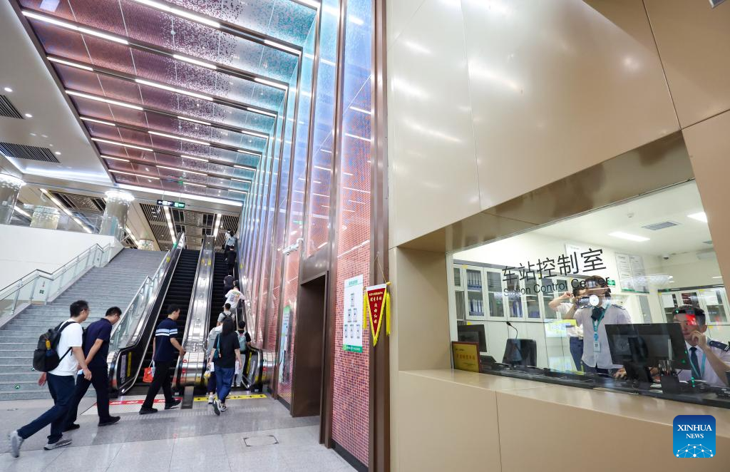 Passengers are seen at a metro station in Shijiazhuang, north China's Hebei Province, Sept. 8, 2025. As of the first half of 2025, the Shijiazhuang Metro has operated a total of 2.0083 million train trips, safely transporting 942 million passengers. Initiated in June 2017, the city's metro system now stretches 78.2 kilometers with 60 stations in service. (Photo by Liang Zidong/Xinhua)