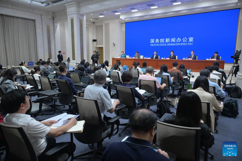The State Council Information Office (SCIO) holds a press conference on achievements in high-quality natural resources development during the 14th Five-Year Plan period (2021-2025) in Beijing, capital of China, Sept. 10, 2025. (Xinhua/Cai Yang)