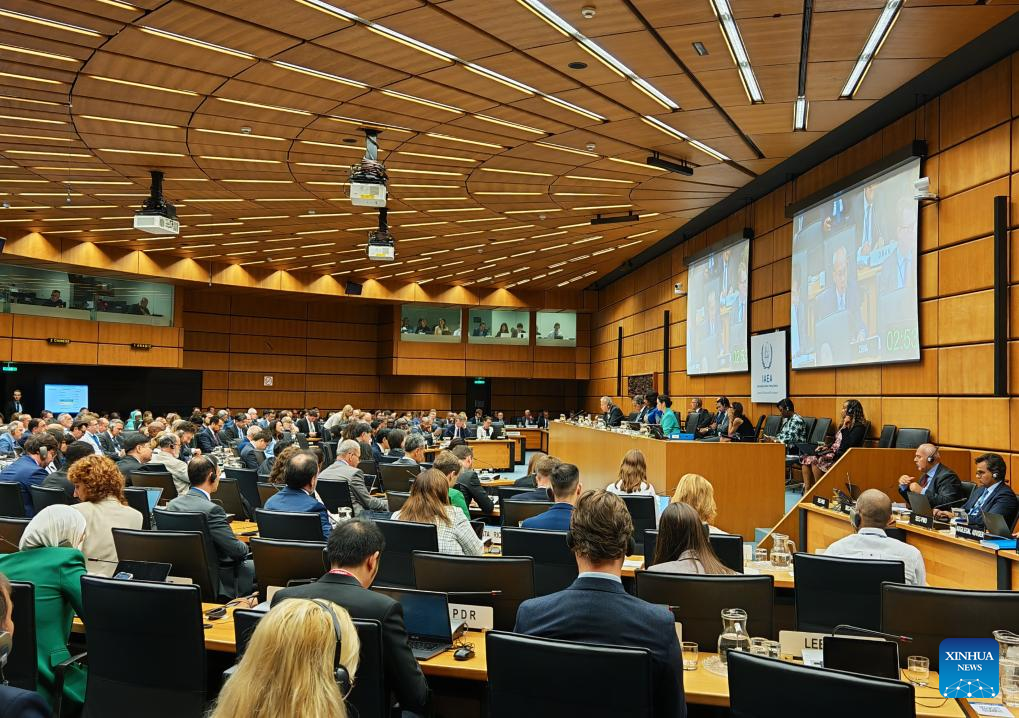 Photo taken on Sept. 10, 2025 shows a view of the Board of Governors meeting of the International Atomic Energy Agency (IAEA) in Vienna, Austria. China explicitly opposes the move by France, Britain and Germany (E3) of using the snapback mechanism to reinstate sanctions on Iran, and calls for further diplomatic efforts on the Iran nuclear issue, Li Song, China's permanent representative to the IAEA, said on Wednesday. (Chinese Permanent Mission to UN and other International Organizations in Vienna/Handout via Xinhua)