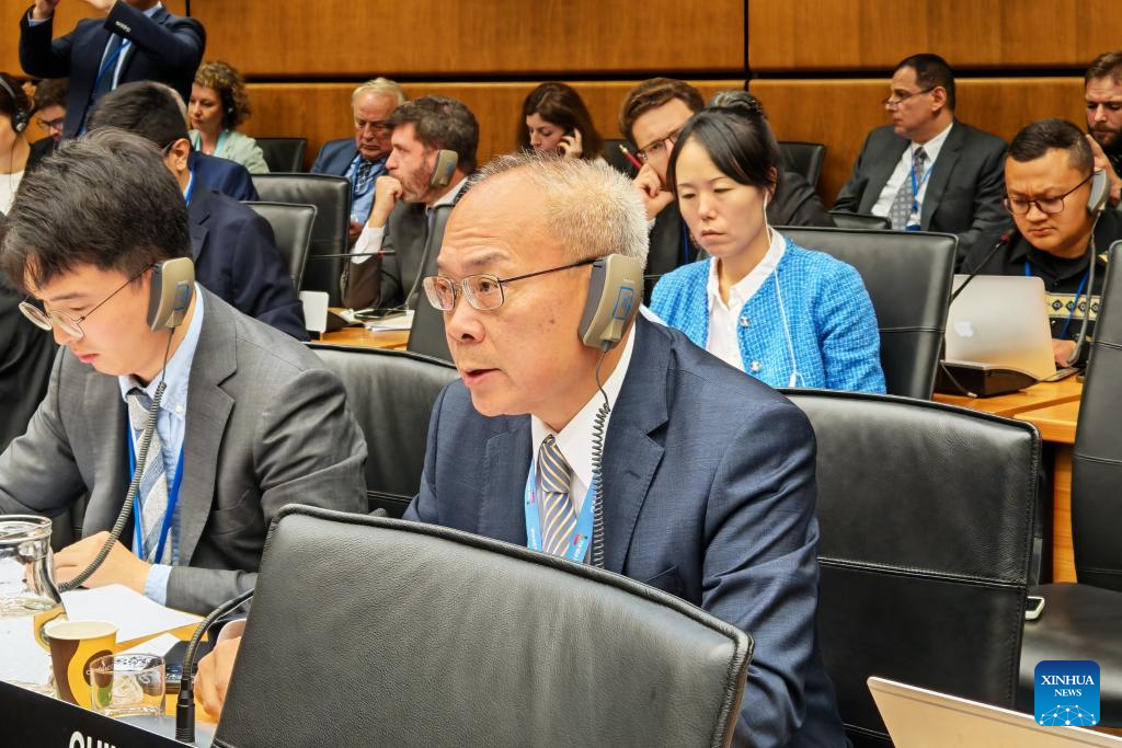 Li Song, China's permanent representative to the IAEA, makes the remarks at the Board of Governors meeting of the International Atomic Energy Agency (IAEA) in Vienna, Austria, Sept. 10, 2025. China explicitly opposes the move by France, Britain and Germany (E3) of using the snapback mechanism to reinstate sanctions on Iran, and calls for further diplomatic efforts on the Iran nuclear issue, Li Song said on Wednesday. (Chinese Permanent Mission to UN and other International Organizations in Vienna/Handout via Xinhua)