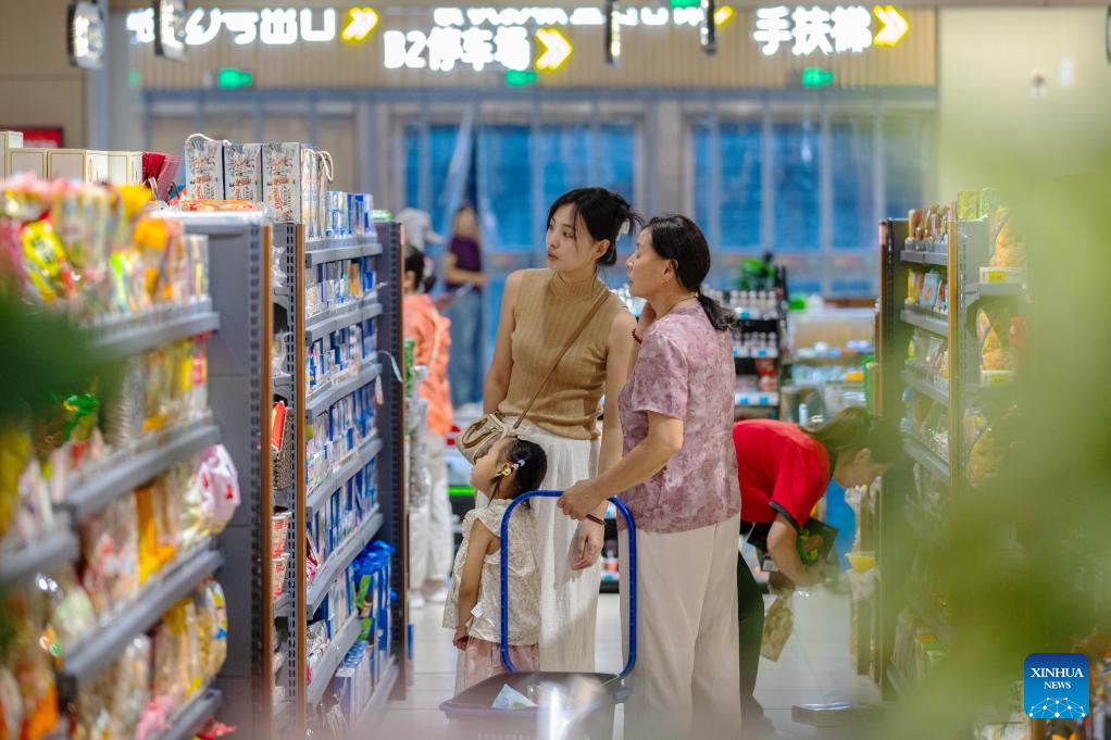 Consumers shop at a supermarket in Qingzhou, east China's Shandong Province, Sept. 10, 2025. (Photo by Wang Jilin/Xinhua)