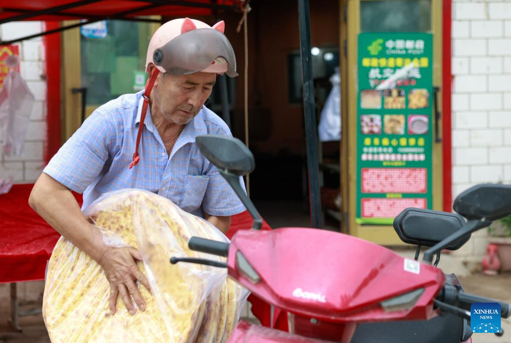 Rishit Himit delivers naans to customers in Kuqa City, northwest China's Xinjiang Uygur Autonomous Region, July 21, 2025. (Xinhua/Wang Jingqiang)