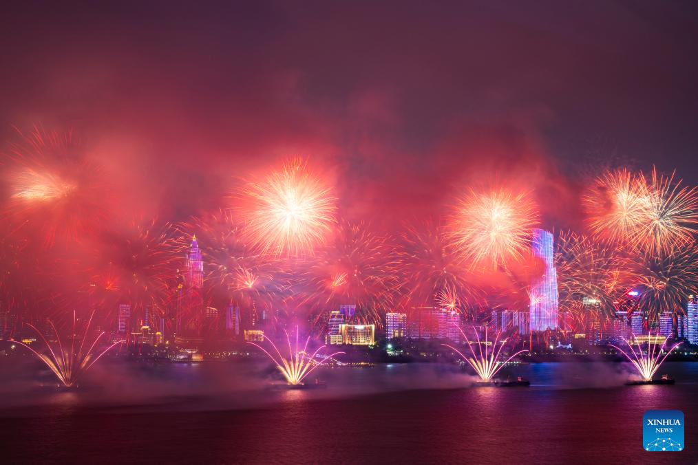This photo taken on Sept. 12, 2025 shows fireworks during the opening ceremony of the 2025 Yangtze River cultural and arts season in Wuhan, central China's Hubei Province. The opening ceremony of the 2025 Yangtze River cultural and arts season was held in Wuhan on Friday. The event will run from Sept. 12 to Oct. 30, featuring a range of activities including art exhibitions, film week, and music week. (Xinhua/Wu Zhizun)