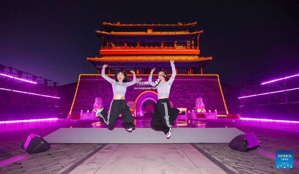 Runners pose for photos before the opening ceremony of Beijing Marathon Training Camp for the upcoming 2025 Beijing Marathon in Beijing, capital of China, Sept. 14, 2025. The 2025 Beijing Marathon will kick off on November 2. (Xinhua/Bai Xuefei)
