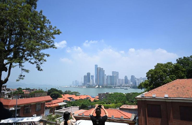 Tourists take photos on Gulangyu Island of Xiamen, Southeast China's Fujian province, Aug 23, 2025. [Photo/Xinhua]