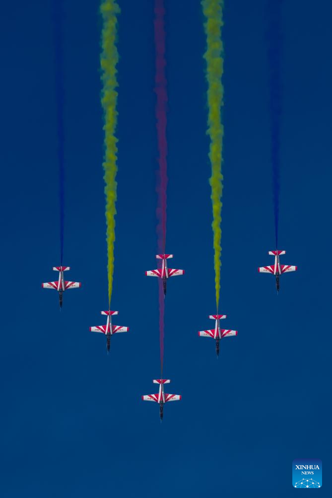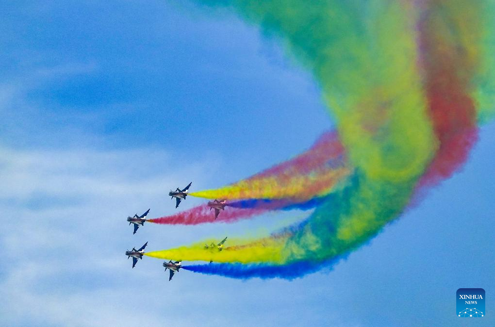 Aircraft of the Bayi Aerobatic Team of the Chinese People's Liberation Army Air Force perform during the 2025 aviation open-day activities of the Chinese People's Liberation Army Air Force and Changchun Air Show in Changchun, northeast China's Jilin Province, Sept. 19, 2025. The events kicked off here on Friday. (Xinhua/Tang Chengzhuo)