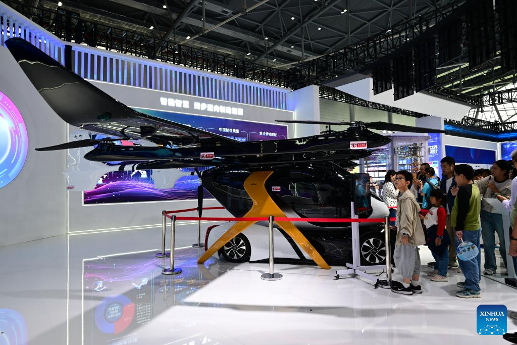 People view an aerial vehicle displayed at the 2025 World Manufacturing Convention (WMC) in Hefei, east China's Anhui Province, Sept. 20, 2025. Themed "Intelligent Manufacturing For a Better Future", the 2025 WMC kicked off here on Saturday. (Xinhua/Huang Bohan)