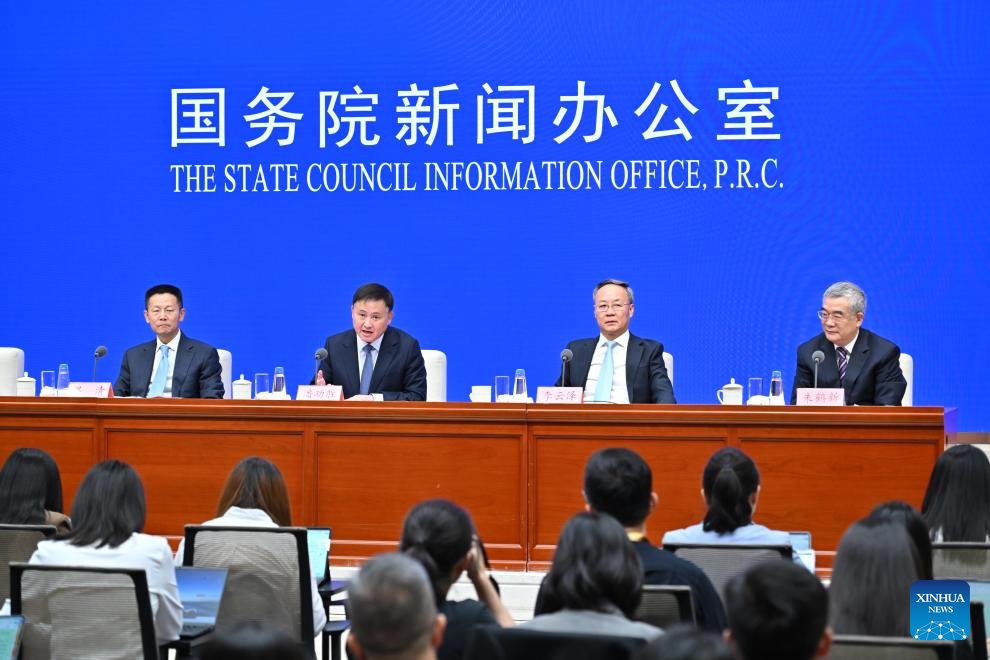 Pan Gongsheng, governor of the People's Bank of China, Li Yunze, head of the National Financial Regulatory Administration, Wu Qing, chairman of the China Securities Regulatory Commission, and Zhu Hexin, deputy governor of the People's Bank of China and head of the State Administration of Foreign Exchange, attend a press conference held by the State Council Information Office (SCIO) on achievements in the financial sector during the 14th Five-Year Plan period (2021-2025) in Beijing, capital of China, Sept. 22, 2025. (Xinhua/Li Xin) BEIJING, Sept. 22 (Xinhua) -- China's monetary policy is currently supportive, with an emphasis on domestic imperatives while balancing both domestic and external situations, central bank governor Pan Gongsheng said on Monday. Responding to a question about the latest rate cut from the U.S. Fed at a press conference, Pan said that China's major financial markets, including stock, bond and foreign exchange markets, have maintained stable operations. In accordance with macroeconomic performance and changes in the overall situation, the People's Bank of China will use a variety of monetary policy tools to ensure ample liquidity, lower overall financing costs, support efforts to stimulate consumption and effective investment, consolidate and strengthen economic recovery momentum, maintain financial markets' stable operations, and keep the exchange rate of the yuan generally stable at an adaptive, balanced level, Pan said. Pan Gongsheng, governor of the People's Bank of China, Li Yunze, head of the National Financial Regulatory Administration, Wu Qing, chairman of the China Securities Regulatory Commission, and Zhu Hexin, deputy governor of the People's Bank of China and head of the State Administration of Foreign Exchange, attend a press conference held by the State Council Information Office (SCIO) on achievements in the financial sector during the 14th Five-Year Plan period (2021-2025) in Beijing, capital of China, Sept. 22, 2025. (Xinhua/Li Xin) Pan Gongsheng, governor of the People's Bank of China, Li Yunze, head of the National Financial Regulatory Administration, Wu Qing, chairman of the China Securities Regulatory Commission, and Zhu Hexin, deputy governor of the People's Bank of China and head of the State Administration of Foreign Exchange, attend a press conference held by the State Council Information Office (SCIO) on achievements in the financial sector during the 14th Five-Year Plan period (2021-2025) in Beijing, capital of China, Sept. 22, 2025. (Xinhua/Li Xin) Pan Gongsheng, governor of the People's Bank of China, Li Yunze, head of the National Financial Regulatory Administration, Wu Qing, chairman of the China Securities Regulatory Commission, and Zhu Hexin, deputy governor of the People's Bank of China and head of the State Administration of Foreign Exchange, attend a press conference held by the State Council Information Office (SCIO) on achievements in the financial sector during the 14th Five-Year Plan period (2021-2025) in Beijing, capital of China, Sept. 22, 2025. (Xinhua/Li Xin) Pan Gongsheng, governor of the People's Bank of China, speaks at a press conference held by the State Council Information Office (SCIO) on achievements in the financial sector during the 14th Five-Year Plan period (2021-2025) in Beijing, capital of China, Sept. 22, 2025. (Xinhua/Li Xin) Li Yunze, head of the National Financial Regulatory Administration, speaks at a press conference held by the State Council Information Office (SCIO) on achievements in the financial sector during the 14th Five-Year Plan period (2021-2025) in Beijing, capital of China, Sept. 22, 2025. (Xinhua/Li Xin) Zhu Hexin, deputy governor of the People's Bank of China and head of the State Administration of Foreign Exchange, speaks at a press conference held by the State Council Information Office (SCIO) on achievements in the financial sector during the 14th Five-Year Plan period (2021-2025) in Beijing, capital of China, Sept. 22, 2025. (Xinhua/Li Xin) Wu Qing, chairman of the China Securities Regulatory Commission, speaks at a press conference held by the State Council Information Office (SCIO) on achievements in the financial sector during the 14th Five-Year Plan period (2021-2025) in Beijing, capital of China, Sept. 22, 2025. (Xinhua/Li Xin) Journalists work at a press conference held by the State Council Information Office (SCIO) on achievements in the financial sector during the 14th Five-Year Plan period (2021-2025) in Beijing, capital of China, Sept. 22, 2025. (Xinhua/Li Xin) A journalist asks questions at a press conference held by the State Council Information Office (SCIO) on achievements in the financial sector during the 14th Five-Year Plan period (2021-2025) in Beijing, capital of China, Sept. 22, 2025. (Xinhua/Li Xin)