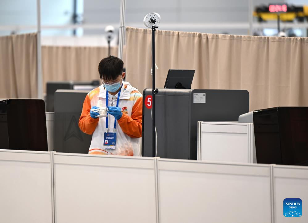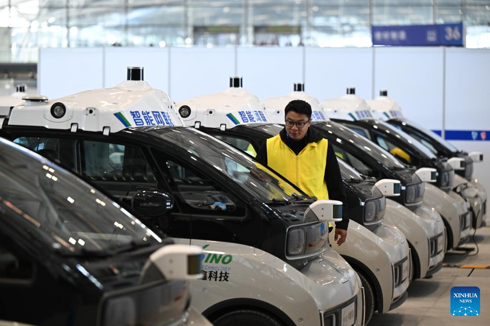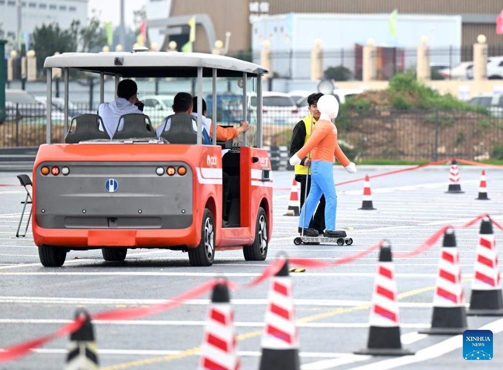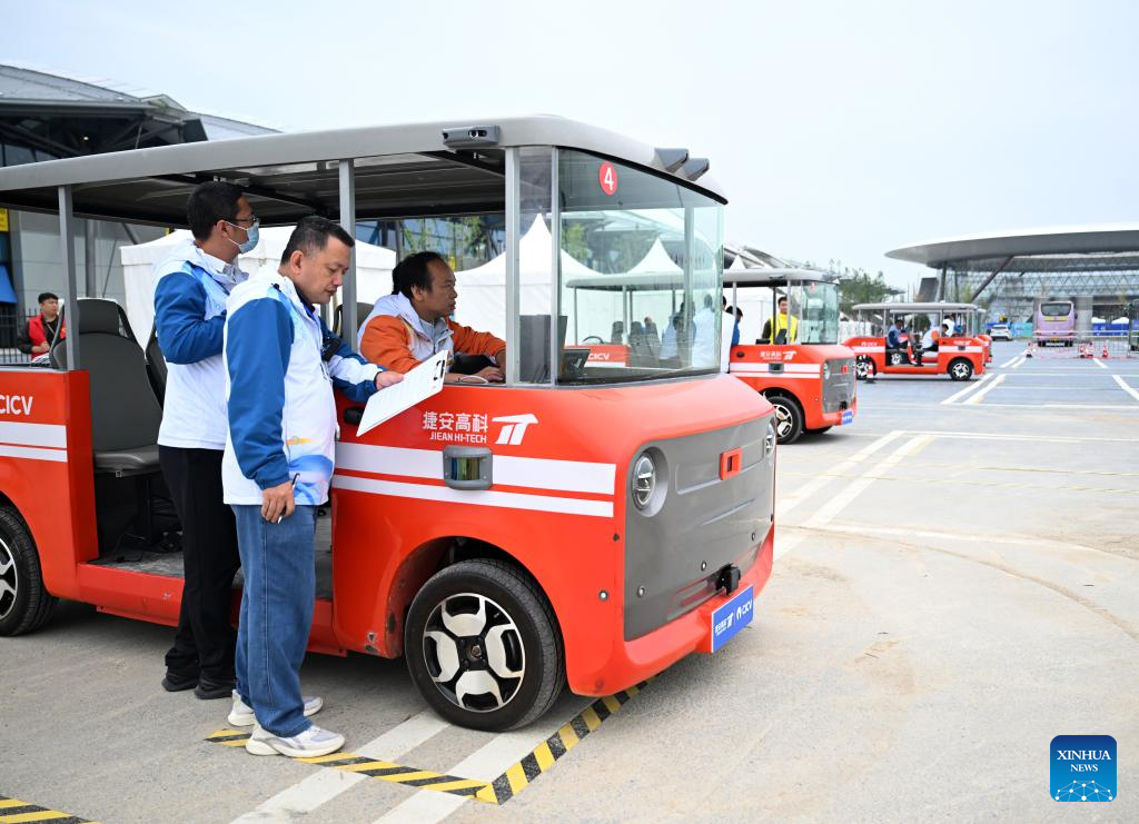 A staff member debugs vehicles to be used in an intelligent connected vehicle operation and maintenance event during the third Vocational Skills Competition in Zhengzhou, central China's Henan Province, Sept. 20, 2025. (Xinhua/Li Jianan)