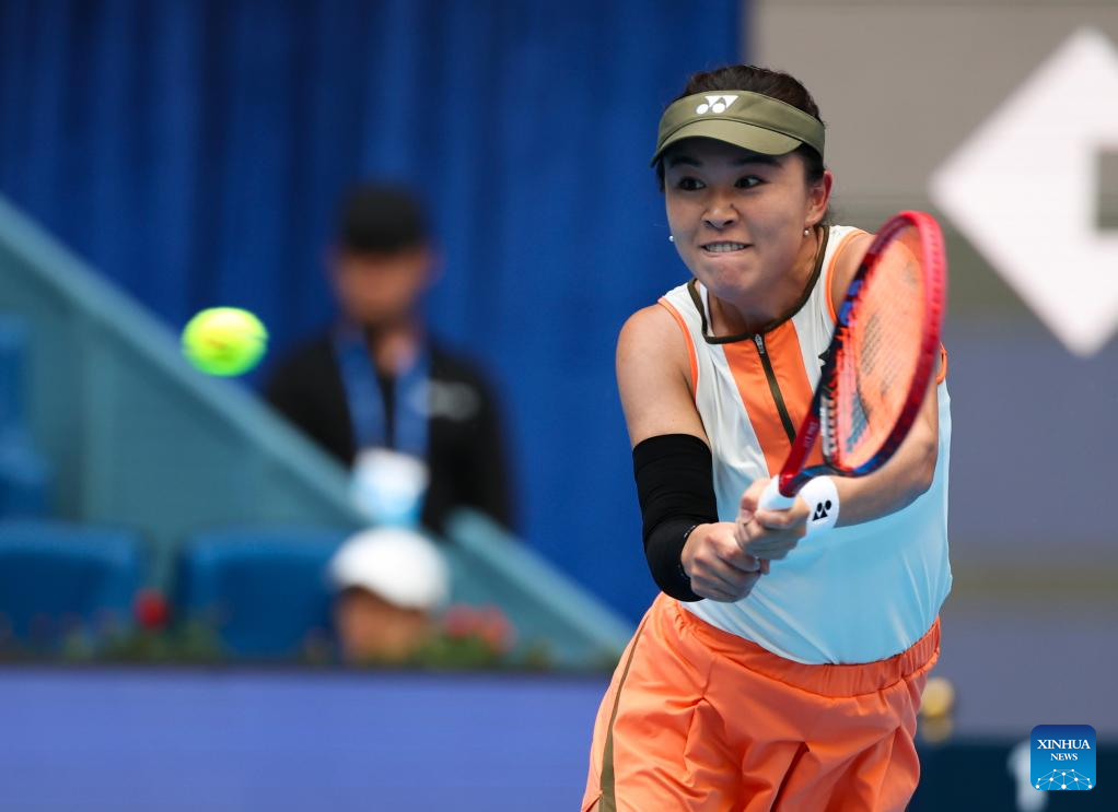 Zhu Lin hits a return during the women's singles first round match between Zhu Lin of China and Uchijima Moyuka of Japan at 2025 China Open tennis tournament in Beijing, China, Sept. 25, 2025. (Xinhua/Du Xinyi)