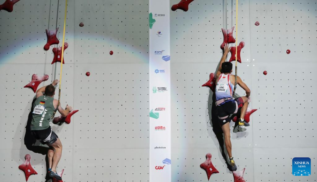 SEOUL, Sept. 25 (Xinhua) -- China's Long Jianguo captured his first world title in men's speed climbing here on Thursday at the 2025 IFSC Climbing World Championships, marking the first time in 13 years that a Chinese male speed climber has won a World Championships gold.