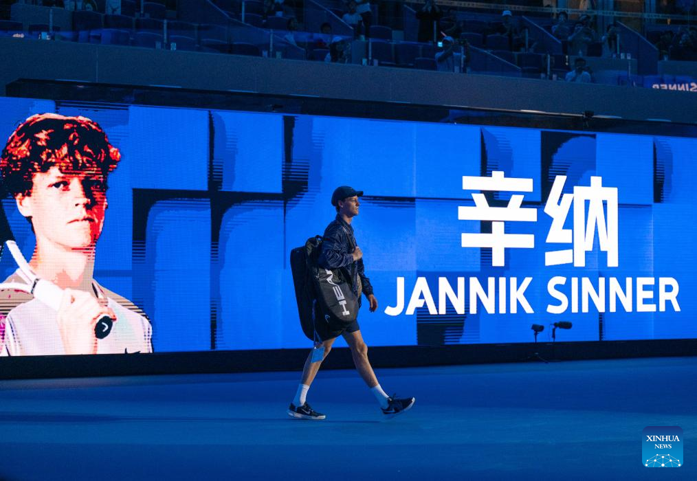 Jannik Sinner enters the court before the men's singles first round match between Jannik Sinner of Italy and Marin Cilic of Croatia at 2025 China Open tennis tournament in Beijing, China, Sept. 25, 2025. (Xinhua/Hu Jingwen)