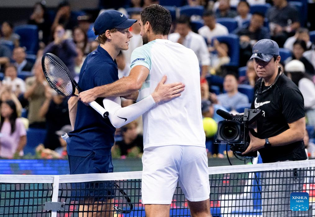BEIJING, Sept. 25 (Xinhua) -- The 2025 China Open men's singles main draw began on Thursday, with top seed Jannik Sinner cruising past former US Open champion Marin Cilic 6-2, 6-2 to reach the round of 16.
