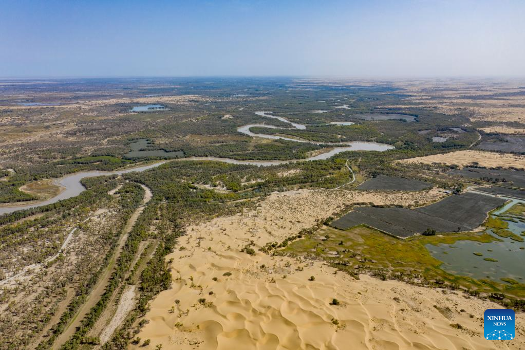 This photo taken on Sept. 19, 2025 shows a view of the Tarim River in Yuli County, Mongolian Autonomous Prefecture of Bayingolin, northwest China's Xinjiang Uygur Autonomous Region. (Xinhua/Jiang Wenyao)