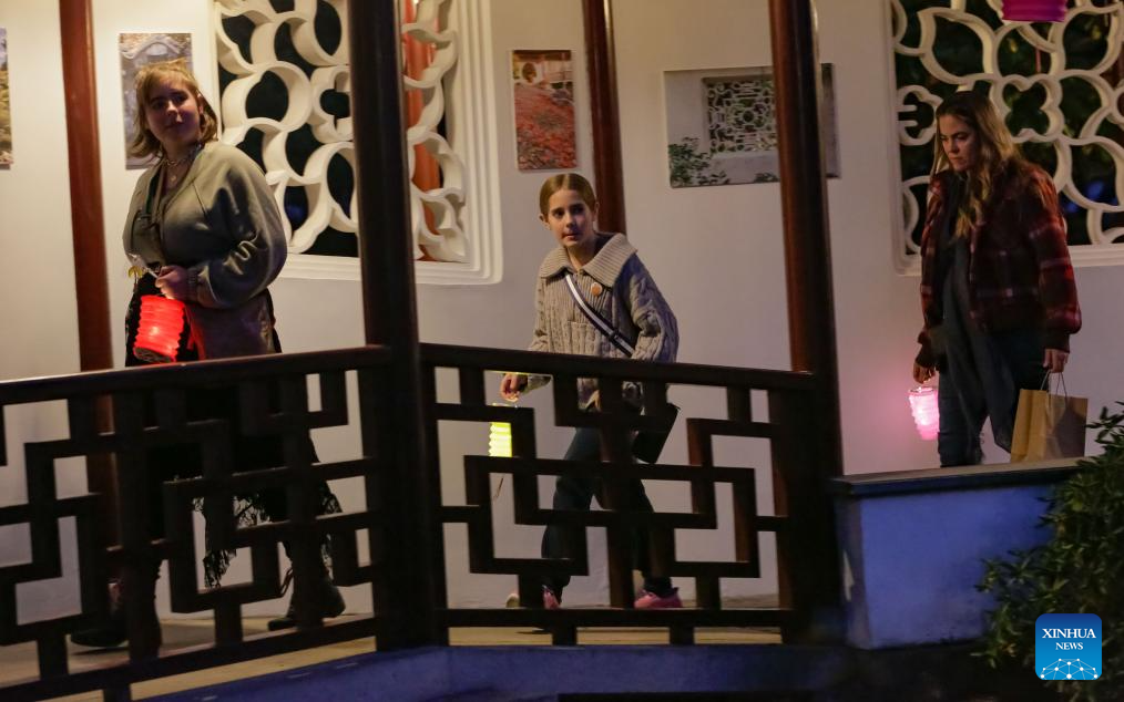 People carry lanterns while attending a Mid-Autumn Festival event at Dr. Sun Yat-Sen Classical Chinese Garden in Vancouver, British Columbia, Canada, Oct. 5, 2025. (Photo by Liang Sen/Xinhua)
