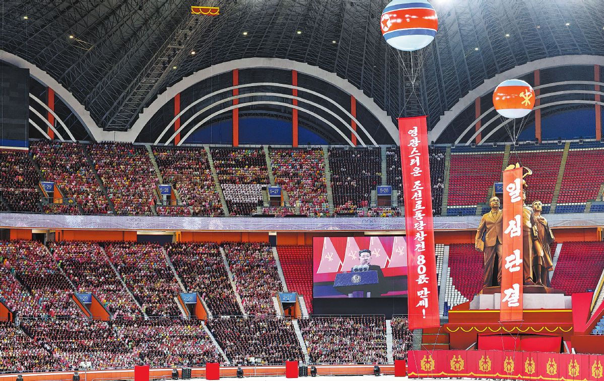 The 80th anniversary celebration of the Workers' Party of Korea is held in Pyongyang, Democratic People's Republic of Korea, on Thursday. (Wang Zhuangfei / China Daily)