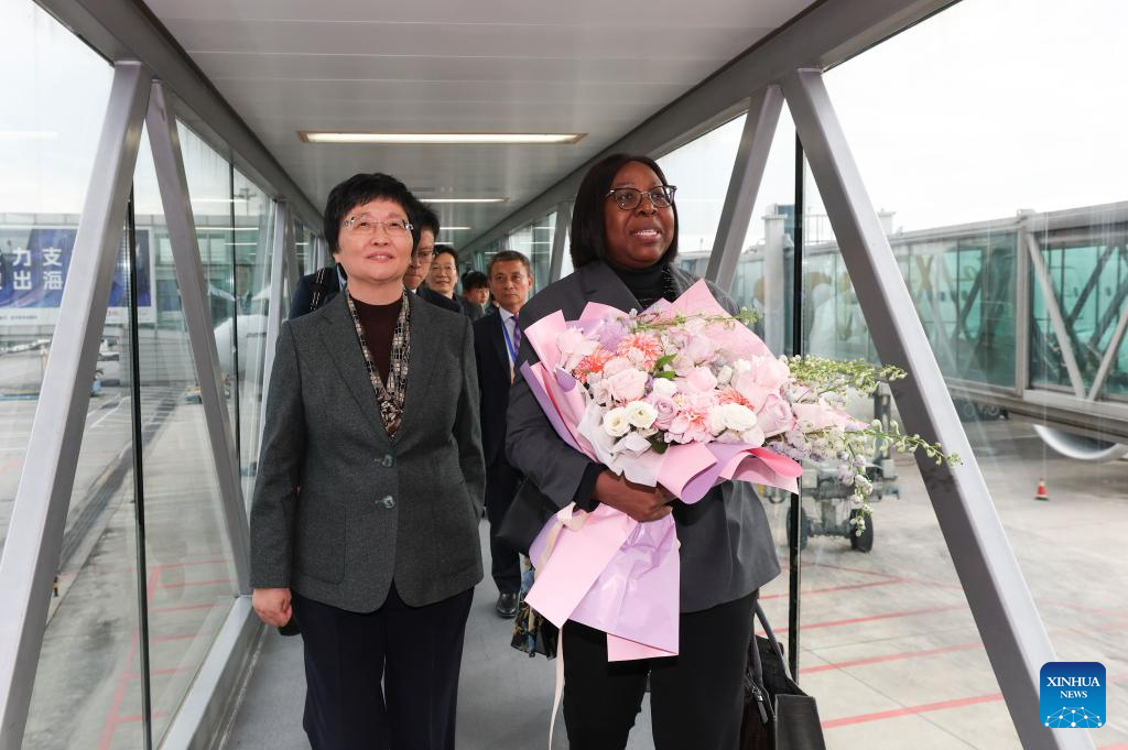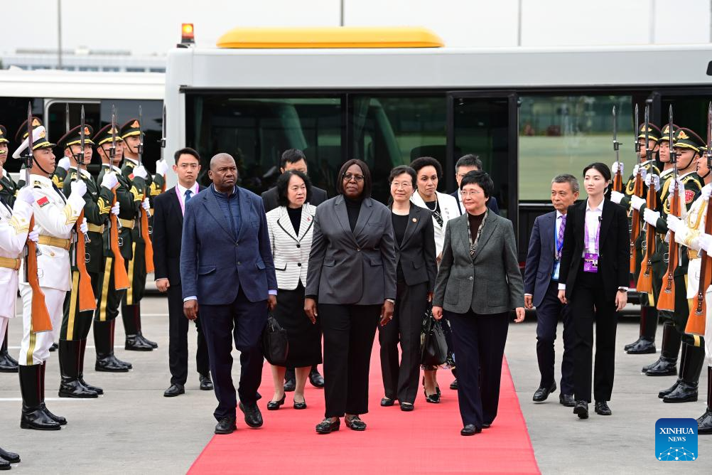 Prime Minister of Mozambique Maria Benvinda Levi arrives in Beijing, capital of China, on Oct. 11, 2025, for the upcoming Global Leaders' Meeting on Women. (Xinhua/Zou Jingyi)