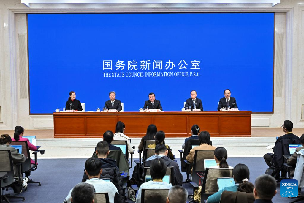 Ni Hong, China's minister of housing and urban-rural development, and Dong Jianguo, Qin Haixiang and Li Xiaolong, all vice ministers of housing and urban-rural development, attend a press conference held by the State Council Information Office (SCIO) on achievements in high-quality housing and urban-rural development during the 14th Five-Year Plan period (2021-2025) in Beijing, capital of China, Oct. 11, 2025. (Xinhua/Li Xin)