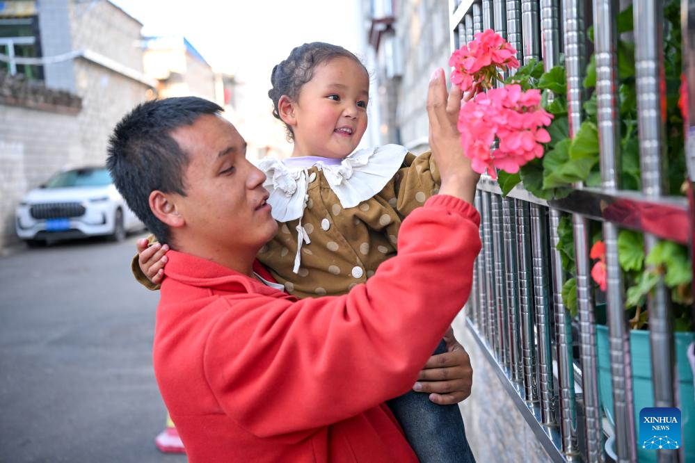 Tawa Tsering plays with his daughter in Lhasa, southwest China's Xizang Autonomous Region, Oct. 10, 2025.(Xinhua/Zhang Cheng)