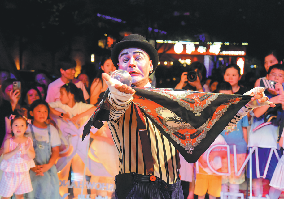 An actor of Cirque du Soleil, a Canadian entertainment group, performs during the Hangzhou X Show in East China's Zhejiang province, on Aug 10. LIAN GUOQING/FOR CHINA DAILY